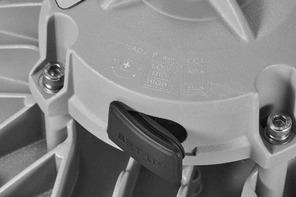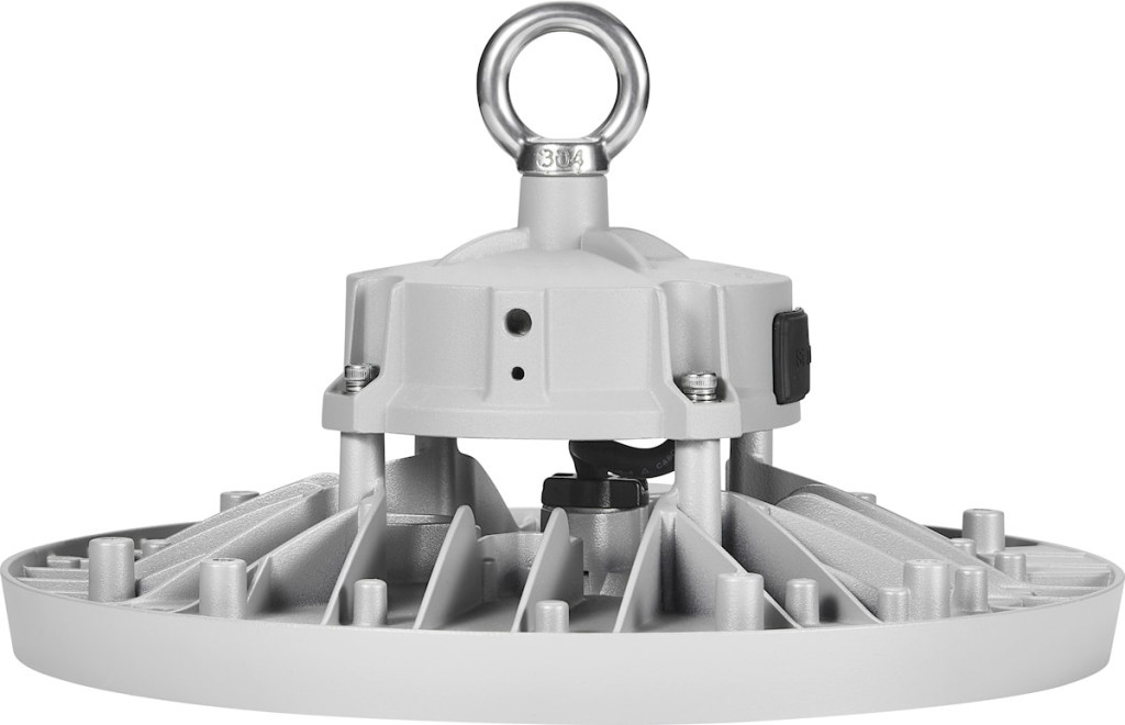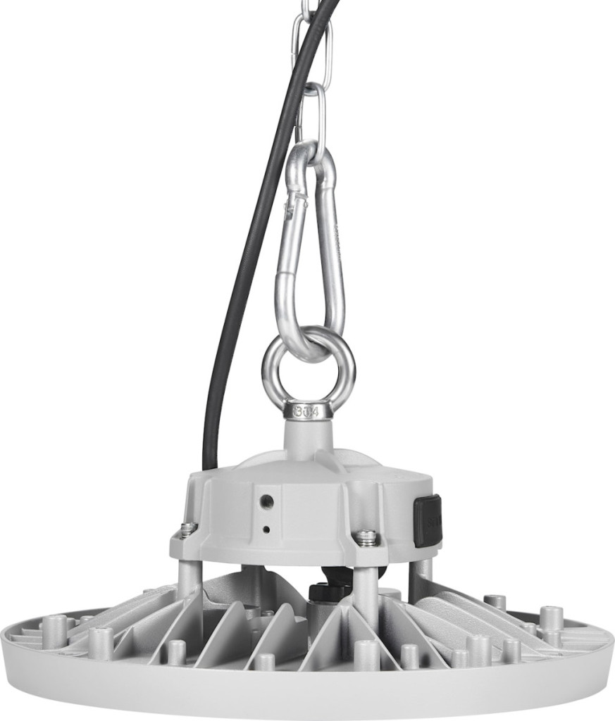 A lámpatest függesztett szerelésre készült, masszív alumínium házzal. A kompakt kialakítás és a 110° sugárzási szög optimális fényeloszlást biztosít nagy belmagasság esetén.