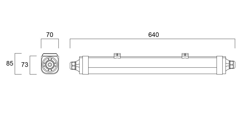 Méret: 640 × 70 × 73 mm